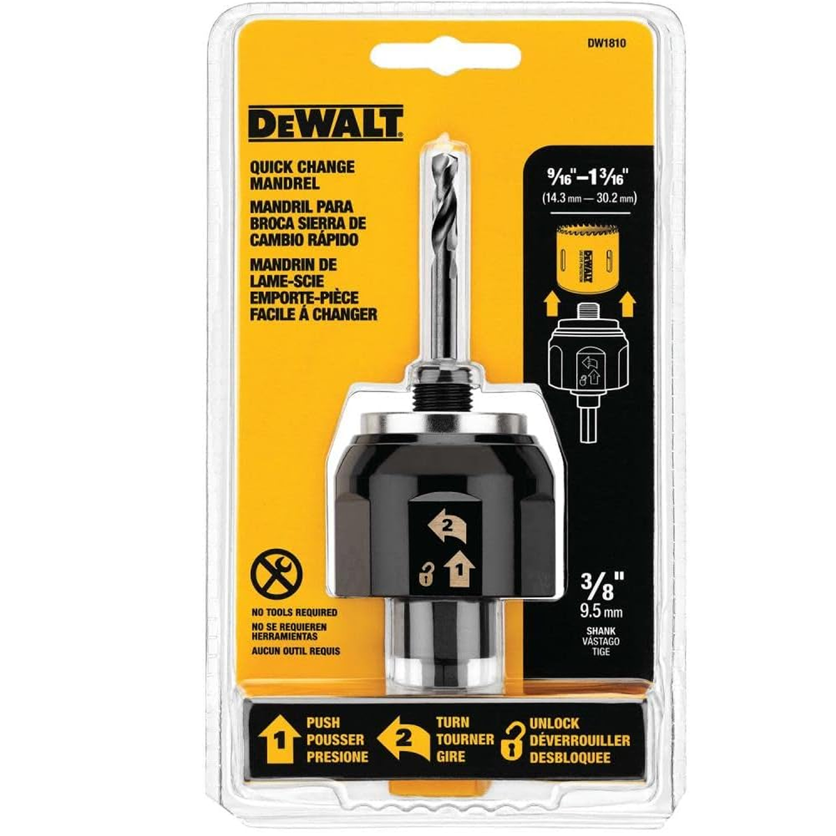 - El Mandril de Cambio Rápido 3/8" DeWalt DW1810 es la herramienta ideal para profesionales que buscan eficiencia y precisión. Diseñado para sierras copa, este mandril permite un rango de capacidad que va desde los 14mm hasta los 30mm (9/16" a 13/16"), adaptándose a diversas necesidades de perforación.